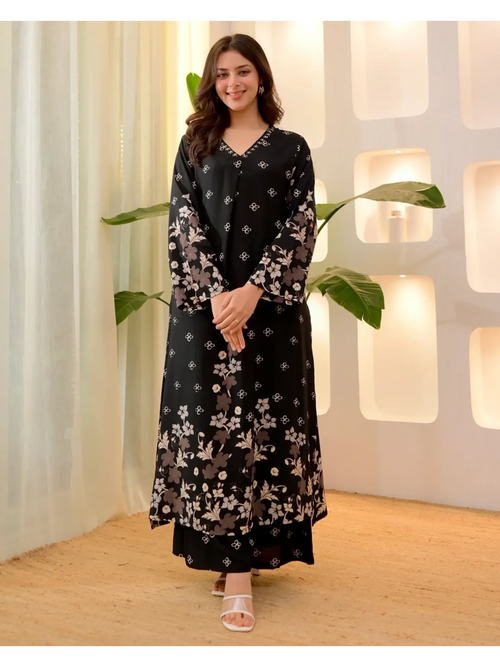 Black Clover Cotton A Line Kurta Palazzo Set